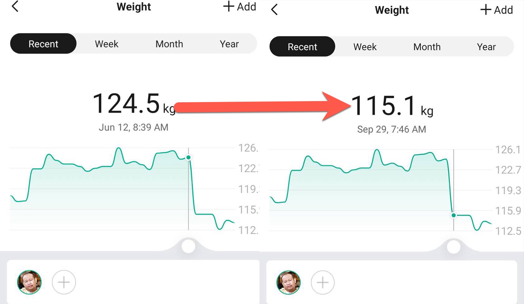 ผมน้ำหนักคงที่อยู่ที่ 120-125 มานาน แม่ปี 2018 ที่เคยใช้วิธีกินน้ำผัก ก็น้ำหนัก 118 กิโลกรัม ออกกำลังกายตลอด ช่วงโควิด ทำให้น้ำหนักผมชึ้นไปสูงสุดถึง 127 กิโล ด้วยการใช้ชีวิตของผมคือ อยู่หน้าจอ ตลอด ทำงานที่บ้าน การเดินน้อยเคลือนไหวน้อย ก็อาศัยปั่นจักรยานเล่นโปเกมอนไป ก็ทำให้มันไม่ขึ้นไปเยอะ ก็ทำใจแต่เจ็บเข่ามากๆ เนื่องจากน้ำหนักที่เยอะขึ้น แต่คิดว่าคงทำไรไม่ได้ลดยากจริงๆ
